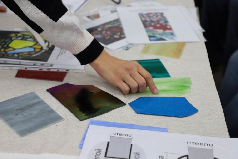 Падчас дэма-класа Паліна Корзун-Фомчанка падрабязна расказала пра працэс вырабу вітража Ціфані, прадэманстравала ўсе неабходныя для гэтага інструменты і матэрыялы.