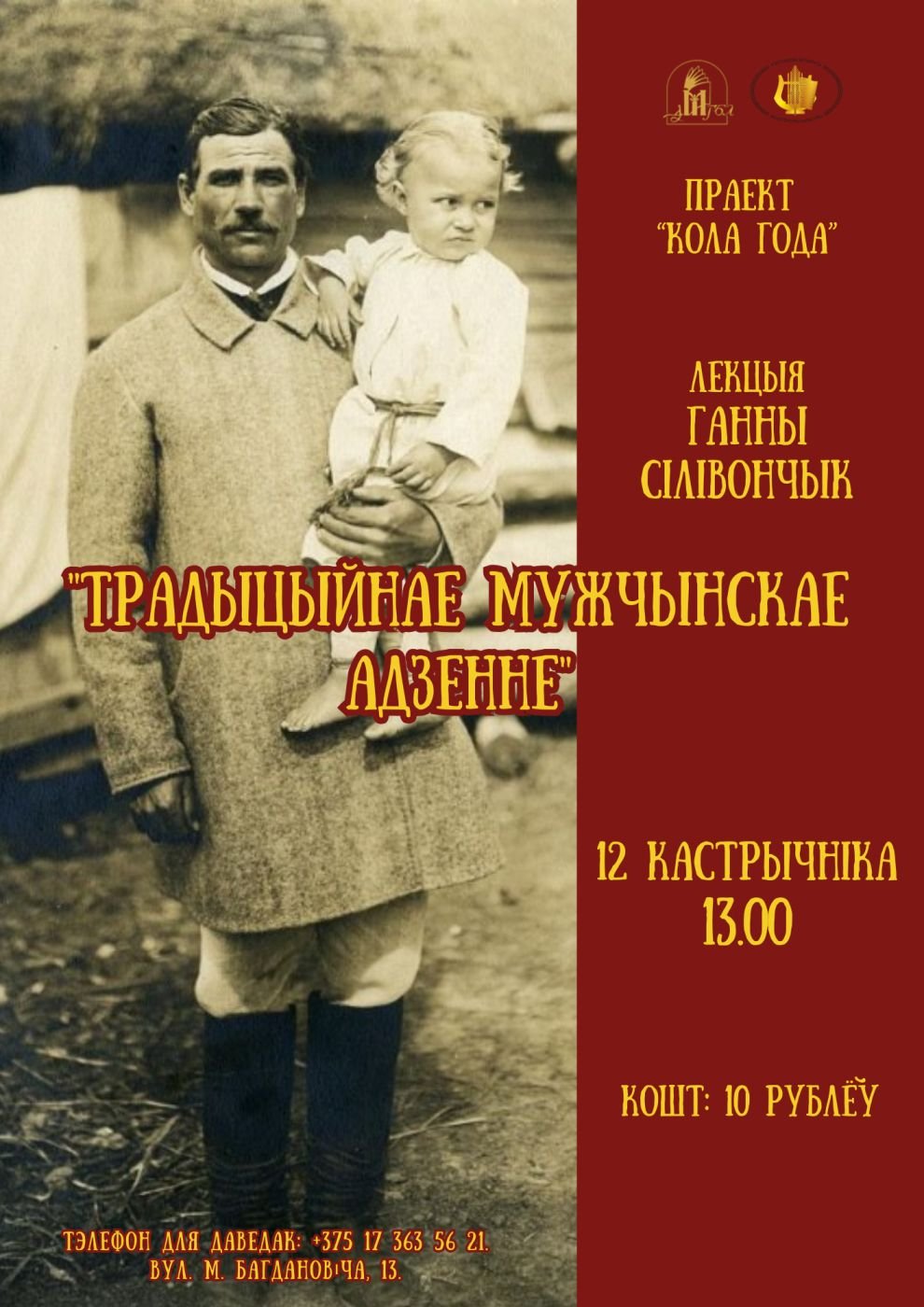 Запрашаем на другую лекцыю Ганны Сілівончык, прысвечаную мужчынскаму традыцыйнаму адзенню. Гэтым разам матэрыялы будуць прысвечаныя разгляду старых фотаздымкаў, дзе мы ўбачым цікавыя мужчынскія вобразы беларускіх сялян канца ХІХ-першай паловы ХХ ст. А таксама падрабязней разгледзім верхняе адзенне, абутак і галаўныя ўборы.